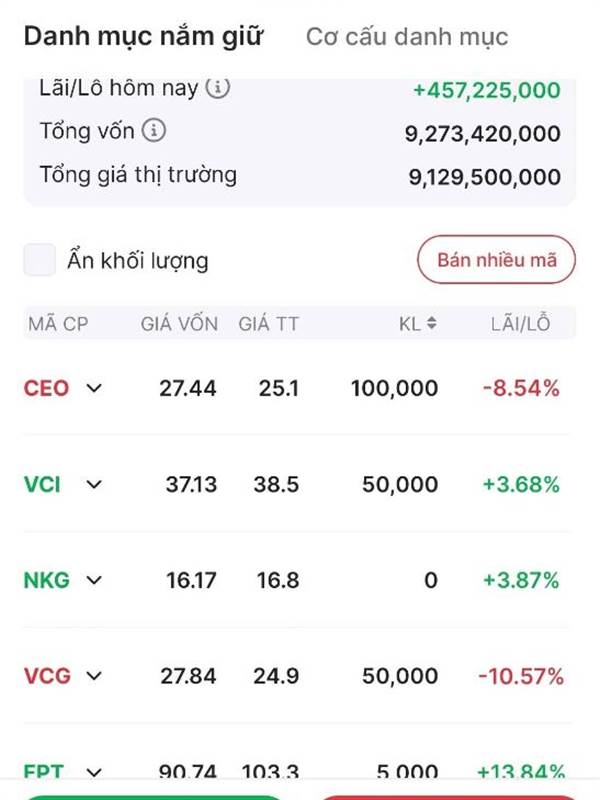 Megas Minh nhìn danh mục T0 là thấy rồi, chứ đâu như danh mục của em, 2 tuần nữa lỗ nhiều lắm đấy 🤣