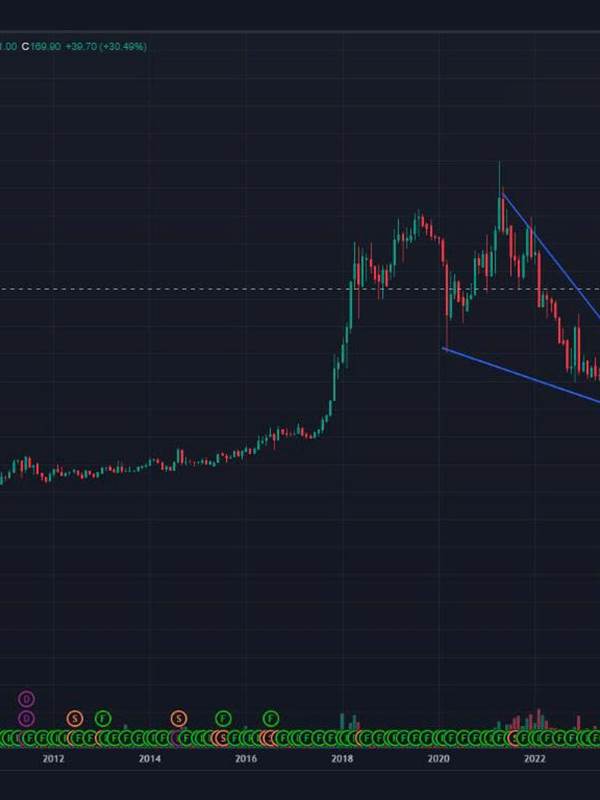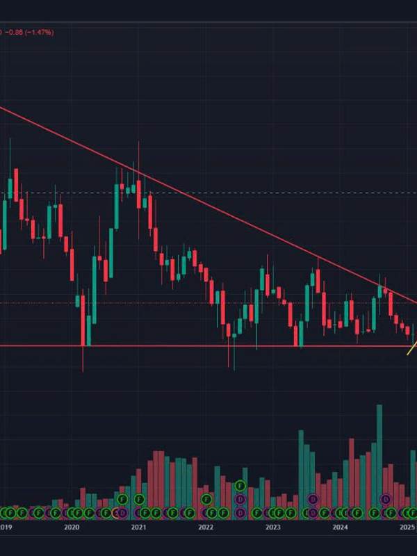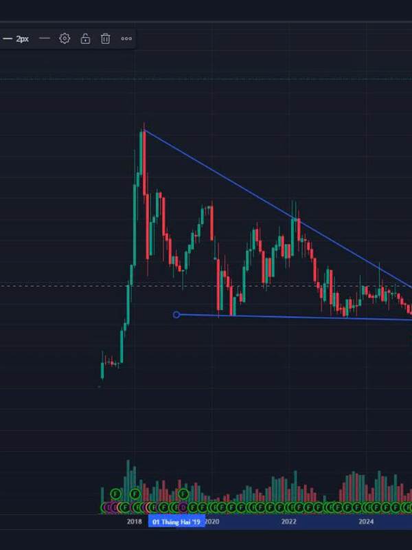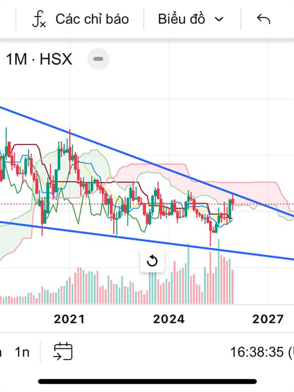 Hãy xem biểu đồ ở khung tháng, giá cổ phiếu đã đi ra ngoài mô hình tam giác, đi xuống dưới và vòng lên, vĩ mô, nội tại không gì xấu thì giá sẽ đi lên
