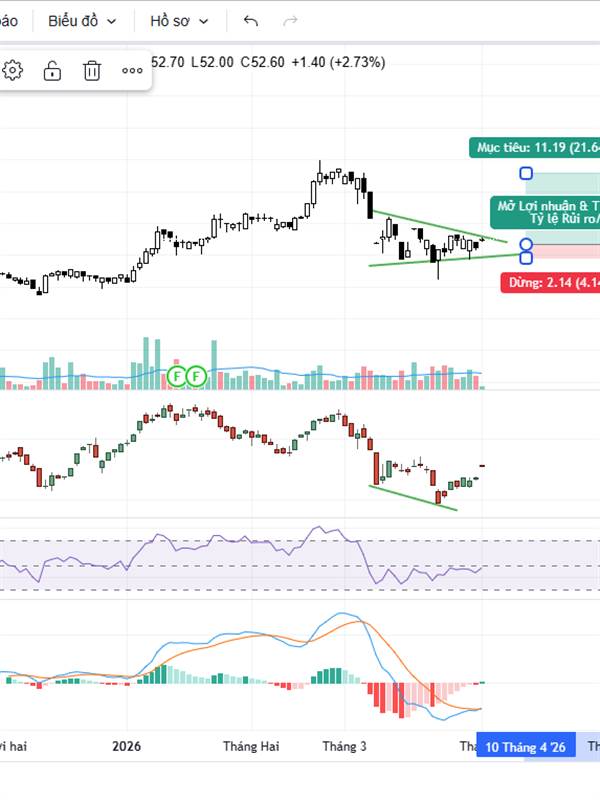 Vùng mua : 51.5-52.5 thăm dò trước 1/2 hàng đợi xác nhận mua đủ sau.