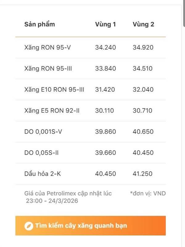 Phương Thúy xăng mới tăng giá lúc 23h đêm mà Bạn. 33.840đ/l rồi