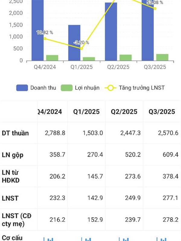 Bác Nghĩa ơi lợi nhuận trước thuế của cả năm có 1.550 tỷ. Thì sau thuế là 1240 ty. Trong đó 9 tháng là 985 ty. Quý 4 được có 255 tỷ. Thế lợi nhuận sau thuế cổ đông công ty mẹ được có 191 ty. Nó quá th...Thêm