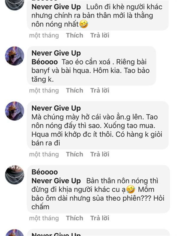 Never Give Up mình còn nhiều vấn đề muốn hỏi bạn lắm, nhưng mình nghĩ bạn éo dám trả lời đâu🤣🤣🤣