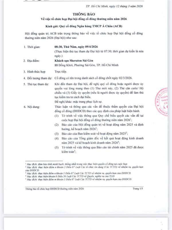 Có ai đã nhận được thư mời họp của ACB chưa nhỉ, ngày 9/4 họp mà sao tới giờ mình chưa nhận được thư nữa