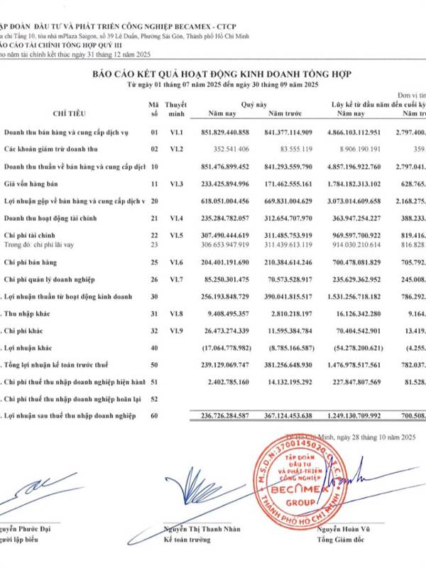 Becamex Group - BCM: Soi qua báo cáo quý 3/2025 thấy tích cực, tài chính mạnh.