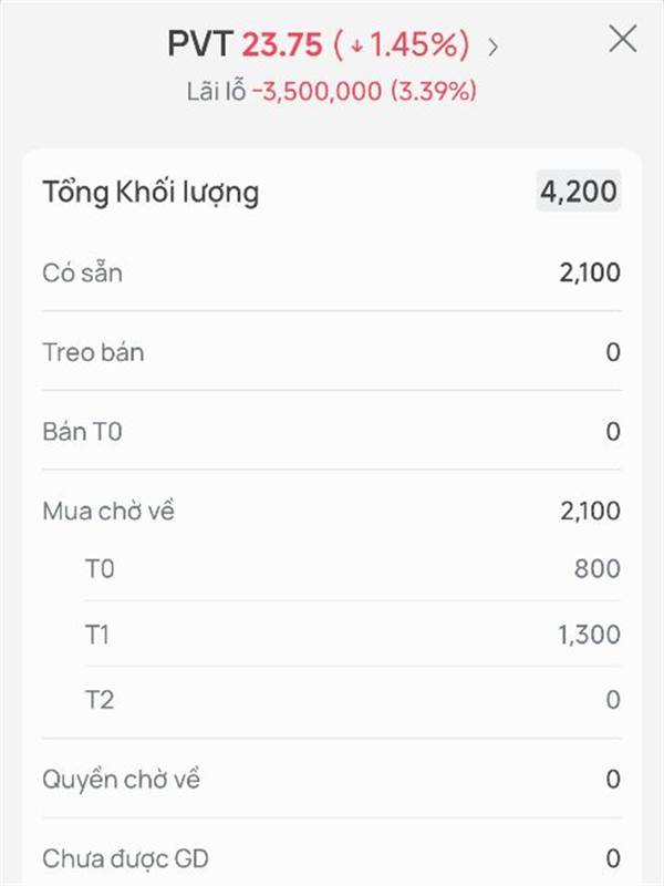 PVT Chiết khấu cũng khá rồi, hôm nay đã có lực cầu từ sàn lên xanh nhưng vẫn chưa đủ. Con này có hướng đi riêng khác dòng dầu khí vì đội tàu chỉ yếu là Tank Oil, khi chiến tranh chấm dứt thì sẽ bùng n...Thêm