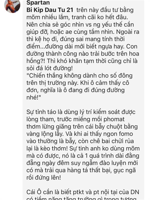 Bi Kip Dau Tu 21 trên này đầu tư bằng mõm nhiều lắm, tranh cãi ko hết đâu. Nên chia sẻ góc nhìn vs ng yếu thế cần giúp đỡ, hoặc ae cùng tầm nhìn. Ngoài ra thì kệ họ đi, đúng sai mang tính thời điểm...đường dài mới biế...Thêm