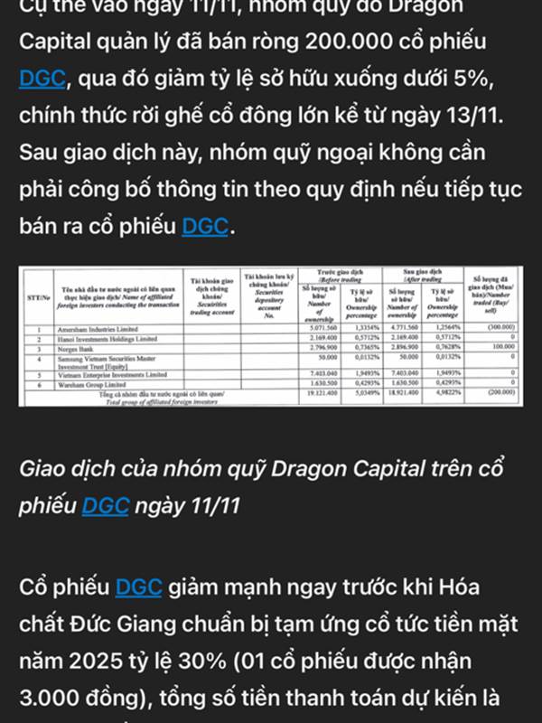 Này cũ rồi. Quỹ Rồng bán sạch giá 100 rồi? Còn nhà đại gia đình sở hữu mỗi người giảm 5%