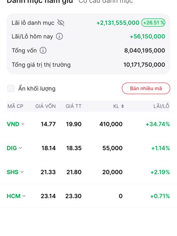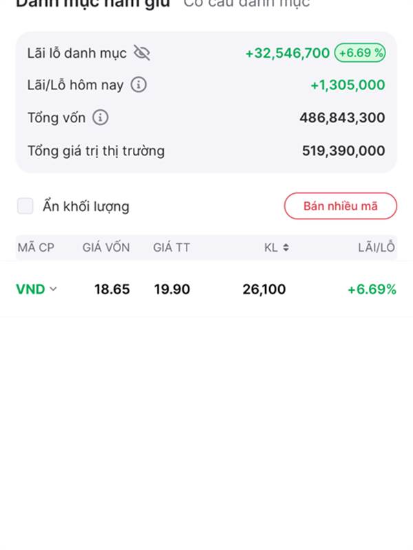 Thắng Cái Ét Mình giữ con điên Vnd này từ 2024 âm lòi mắt , tbg chán chê đến cuối tháng 8/2025 lãi ra đc kha khá ko bán để bg nó rơi 1 mạch từ 27 xuống 17x , giờ mới ngoi lên đc 1 tý thôi dư địa tăng vẫn còn nhiều...Thêm