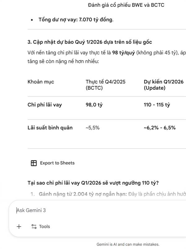 Về lãi vay thì ngoài 1 phần hedging thì phần k bao phủ hết, lãi suất tăng sẽ phản ánh vào quý 1/2026 này. Thông thường lãi suất sẽ được update 3 hoặc 6 tháng, việc tăng đã phản ánh 1 phần vào quý 4 rồ...Thêm