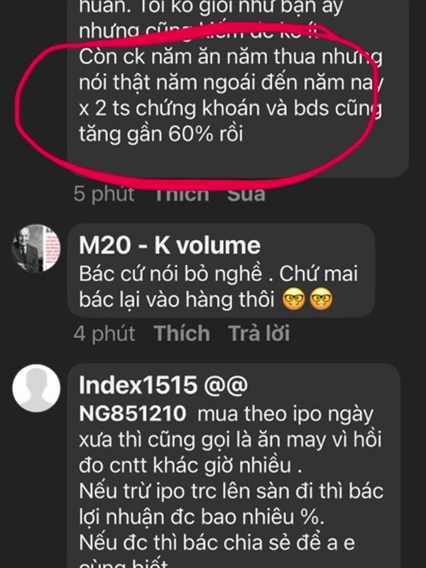 NG851210 vậy cũng same same tôi , nhưng đó là 2 năm gần đây . Tôi đang muốn bác chia sẻ thêm sau 18 năm ( trừ ipo đi ) thi bác lợi nhuận bao nhiêu % thôi bác . Chứ 1 2 năm gần đây ko tính