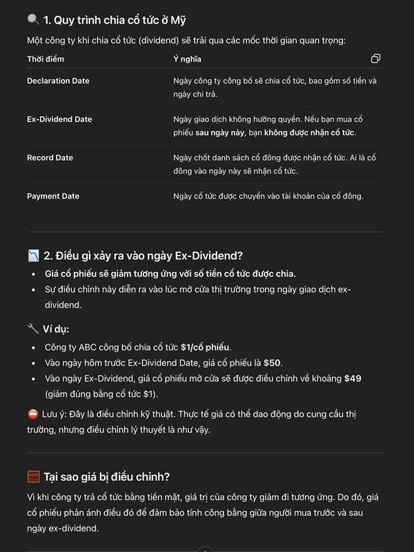 Nghèo Vì Chứng Khoán Cho mình hỏi bro chút, ví dụ ở chứng khoán Mỹ thì cổ chia cổ tức 5k đi, giá hiện tại là 15k thì sau khi chia giá của nó vẫn là 15k hả? Hay là nó chỉ giảm giá vốn trong khi giá thị trường thì ko điều c...Thêm