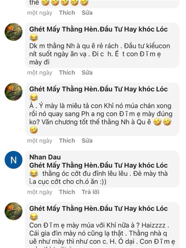 Ghét Mấy Thằng Hèn.Đầu Tư Hay khóc Lóc 😂 thằng óc cớt ở nhà đã cho bố mẹ đồng nào chưa :)) cào phím mõm bây ôi