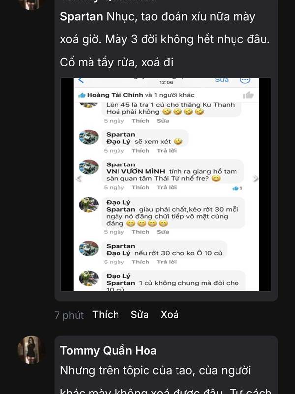 Tommy Quần Hoa nó mà dám gọi điện cho tôi gọi tôi bằng bố tôi sẽ trả nợ cho nó 1 triệu, hứa danh dự 😄