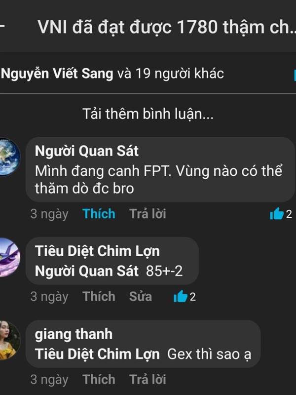 Tôi có nói cụ thể mã nào đâu, ví dụ Vượn kéo *** chỉ nó chỉnh nhẹ 20% từ đỉnh thì Vni về đó có gì đâu