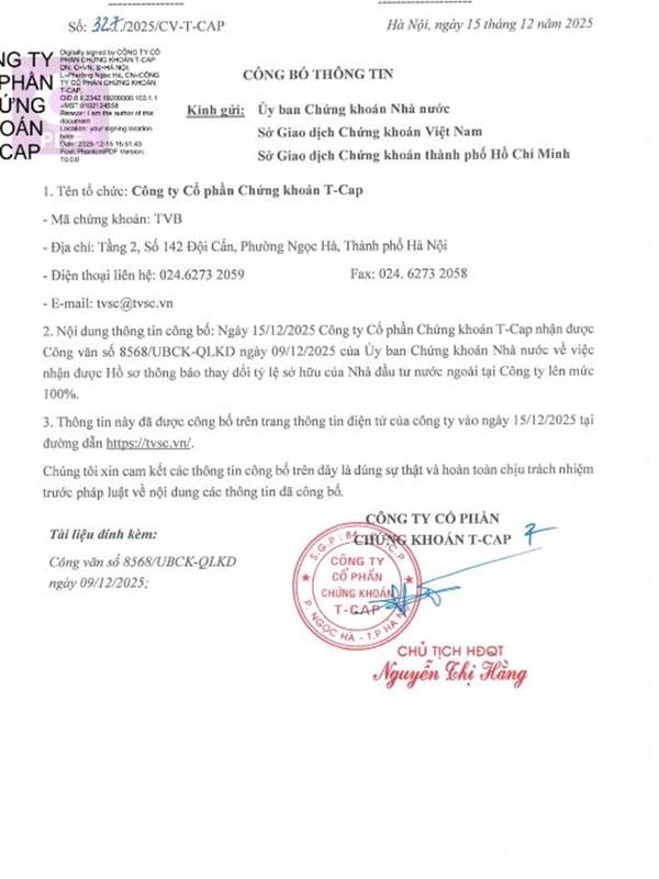 Khả năng cao TVB rùi, số lượng cổ phiếu ít, cơ bản lãnh đạo và cty nắm trên 70% cổ phiếu rùi. Có quyết định nâng sở hữu nhà đầu tư nước ngoài lên 100% rồi. Vậy khả năng cao là TVB rùi.