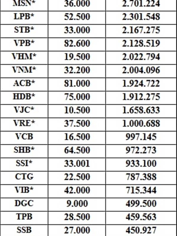 Danh sách tự doanh mua ròng thoả thuận hôm nay: