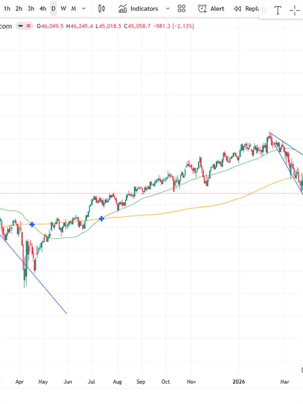 Dài hạn vẫn đang uptrend mạnh mẽ. DJ ko có downtrend, chỉ có nhịp chỉnh trong uptrend