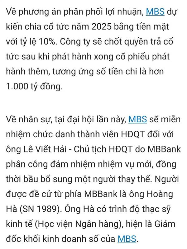 Sau khi phát hành xong tỉ lệ 2:1 vào ngày 3/4/2026. Chia cổ tức bằng tiền mặt 10% nhé các Khổ đông, tgđ đang báo cáo . Chủ tịch được điều sang làm chủ tịch , tổng giám đốc , cty bảo hiểm của Ngân Hàng...Thêm