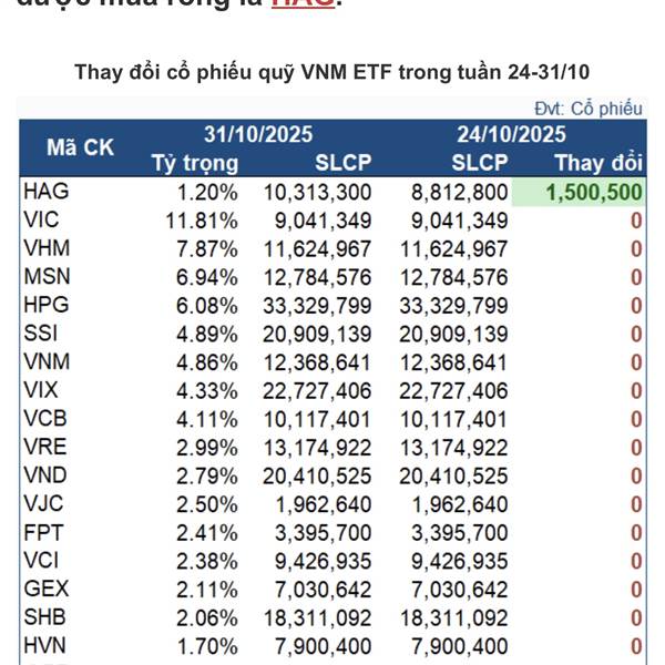Dat Tran Quan trọng là quỹ gia tăng tỷ trọng trong khi các mã khác thì không