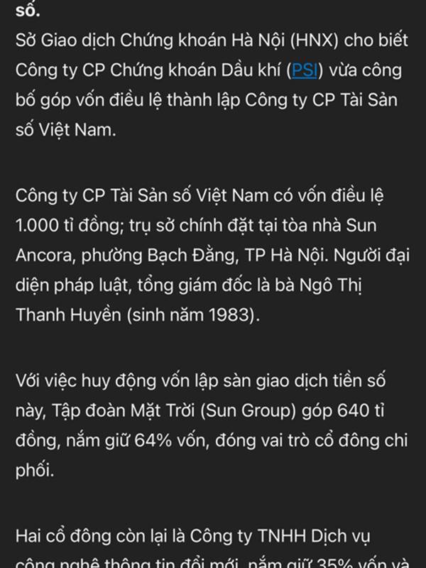 Sun Group góp 64% vốn điều lệ, tương ứng 640 tỉ đồng, để thành lập sàn giao dịch tài sản số.