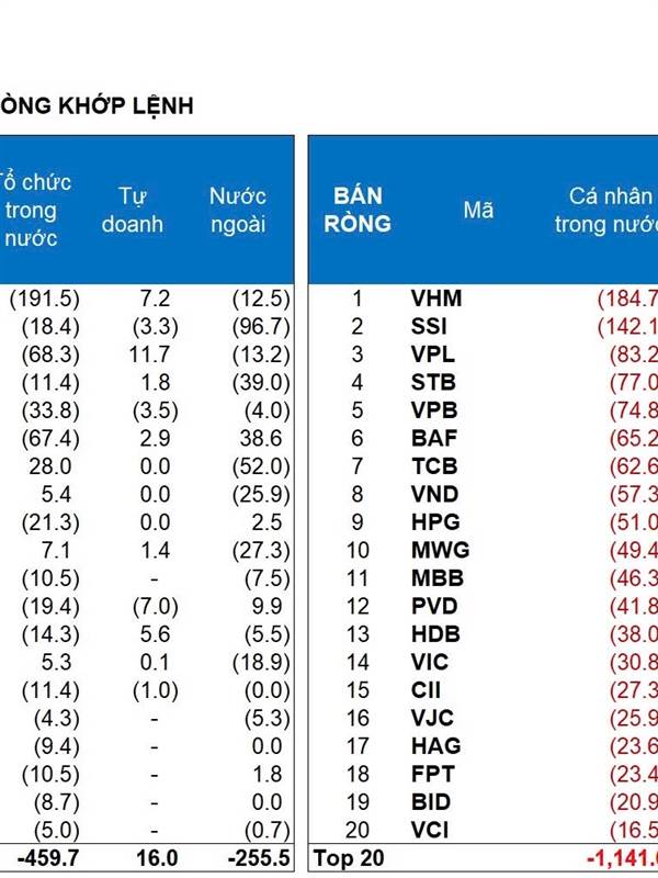 + Top BÁN ròng : STB, VHM, PNJ