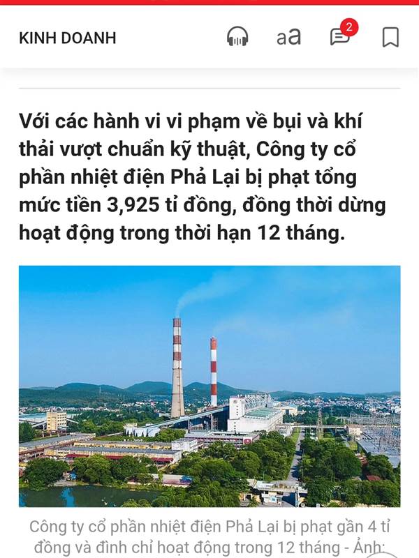 Liên quan đến môi trường là tin xấu rồi. Hy vọng ko giống nhiệt điện PL phải dừng tổ máy / giảm công suất để khắc phục. Khả năng dự án nâng cấp hệ thống xử lý khí thải sẽ được đẩy nhanh 😅