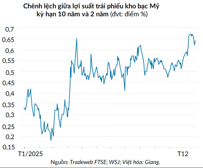 Trong những tuần gần đây, chênh lệch giữa lợi suất trái phiếu kho bạc ngắn hạn và dài hạn đã nới rộng.
