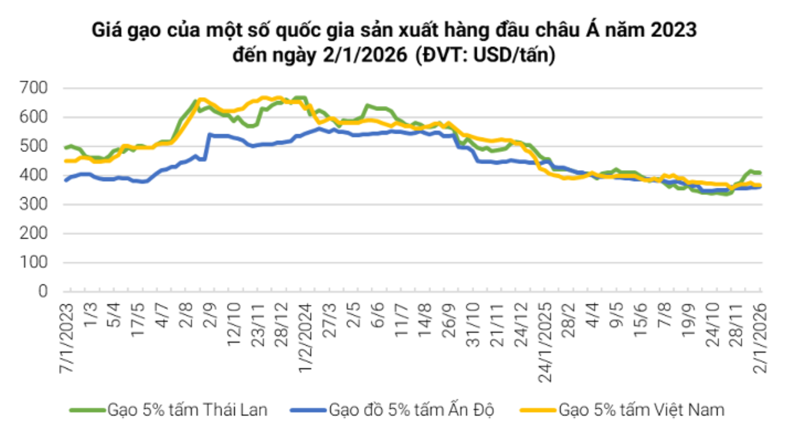 Trong khi đó, Bangladesh đã phê duyệt mua 50.000 tấn gạo với giá 359,77 USD/tấn từ công ty thương mại Bagadiya Brothers của Ấn Độ — đơn vị chào giá thấp nhất trong gói thầu quốc tế ngày 22/12.