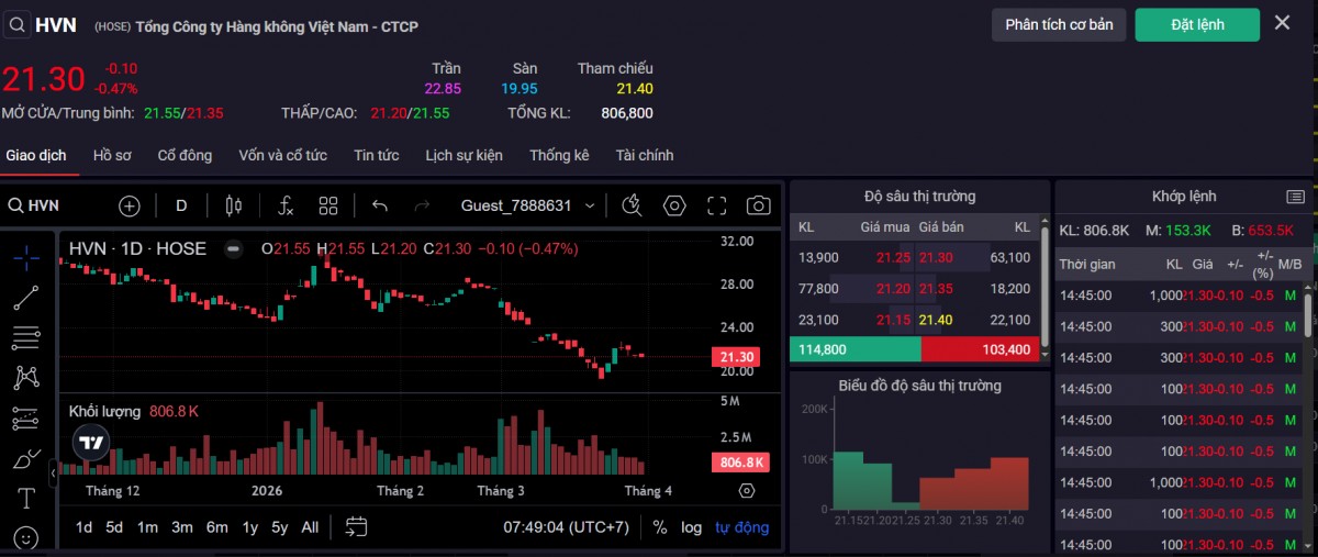 Trên thị trường chứng khoán, cổ phiếu HVN đang giao dịch quanh mức 21.300 đồng/cổ phiếu (tính đến sáng 1/4/2026), giảm nhẹ 0,47% so với giá tham chiếu. Dù kết quả kinh doanh năm 2025 cho thấy sự phục hồi tích cực nhưng mã cổ phiếu này đã giảm đáng kể so với vùng đỉnh 30.000 - 32.000 đồng thiết lập hồi đầu năm.