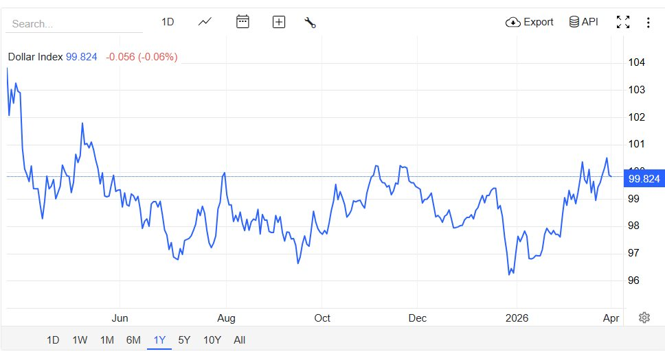 Chỉ số DXY sụt giá trong ngày cuối thang 3, nguồn: Tradingeconomics.