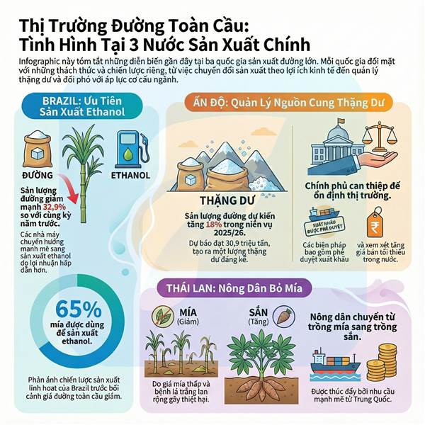 Thị trường đường toàn cầu đang chịu tác động từ hai gọng kìm đối nghịch: chiến lược ưu tiên ethanol của Brazil đang siết chặt nguồn cung, trong khi Ấn Độ đối mặt với thặng dư khổng lồ đe dọa làm ngập ...Thêm