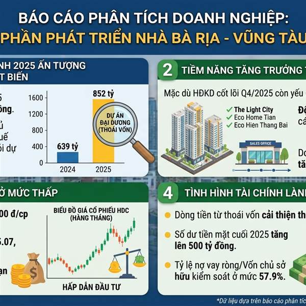 Cổ phiếu HDC có nền tảng doanh nghiệp cơ bản tốt với các dự án dài hạn và tình hình tài chính đã được cải thiện. ...