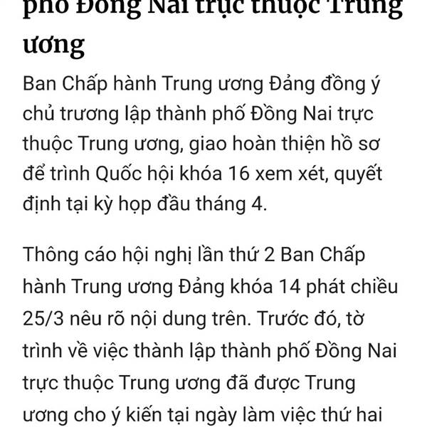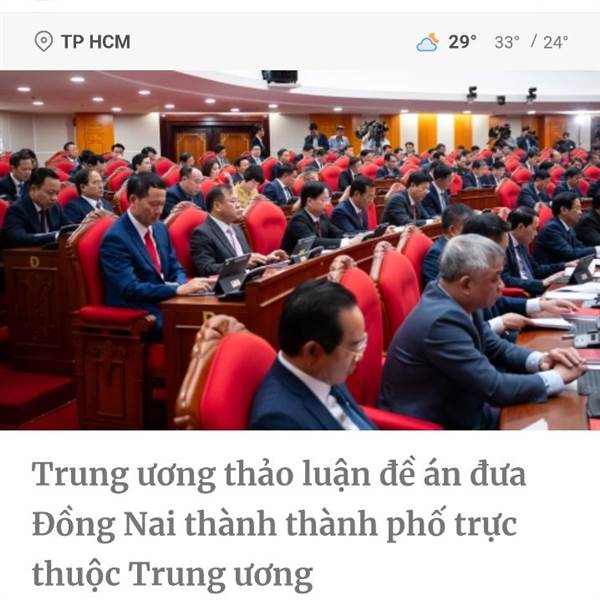 Ngày làm việc thứ hai của Hội nghị Trung ương 2 khóa 14, Ban Chấp hành Trung ương thảo luận, cho ý kiến về tờ trình thành lập thành phố Đồng Nai trực thuộc Trung ương.
