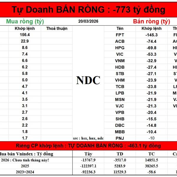 Năm Dòng Kẻ NDC: Kết phiên 20/3/2026 - Nhận định thị trường Chứng khoán hôm nay - NDC Chứng Khoán, Crypto, Vàng