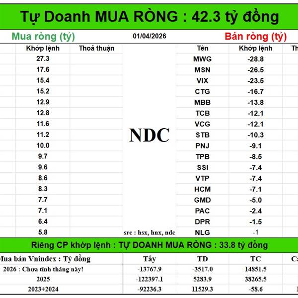 Năm Dòng Kẻ NDC: Kết phiên 1/4/2026 - Nhận định thị trường Chứng khoán hôm nay - NDC Chứng Khoán, Crypto, Vàng