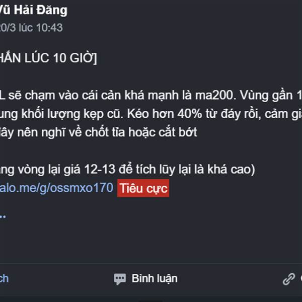 Trưởng phòng TVĐT 121 VPS . Tư vấn và Phân tích đầu tư chứng khoán. Số điện thoại liên hệ 0973723461