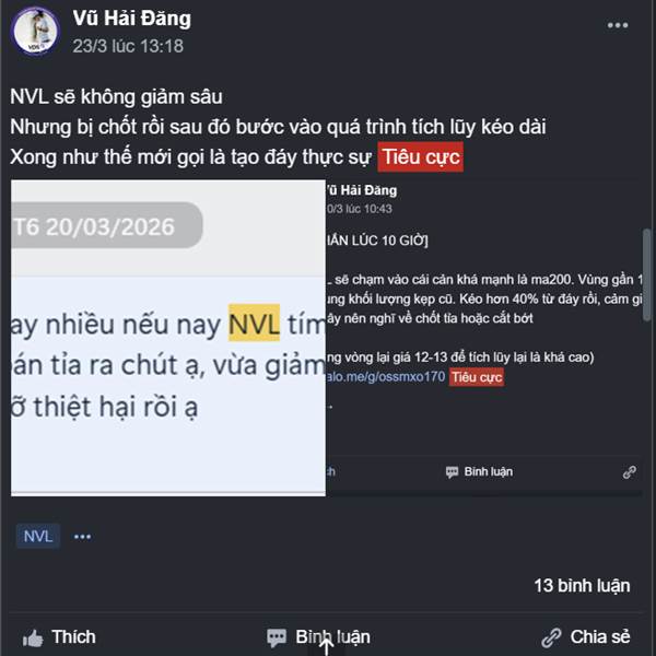 Nay NVL sẽ chạm vào cái cản khá mạnh là ma200. Vùng gần 15 cũng là tập trung khối lượng kẹp cũ. Kéo hơn 40% từ đáy rồi, cảm giác quanh đây nên nghĩ về chốt tỉa hoặc cắt bớt