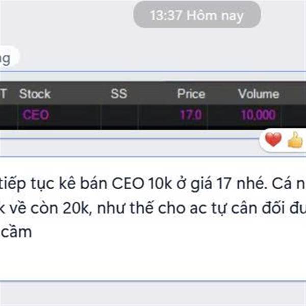=> Chiều nay em tiếp tục tỉa CEO nha, coi như nhịp hồi thành công, hạ tổng 50% hàng từ thứ 6 đến giờ
