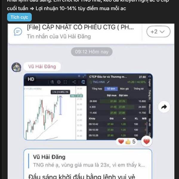Khai lệnh đầu sáng. Em chốt lời TNG nha, kèo đã khuyến nghị ac ở clip cuối tuần => Lợi nhuận 10-14% tùy điểm mua mỗi ac