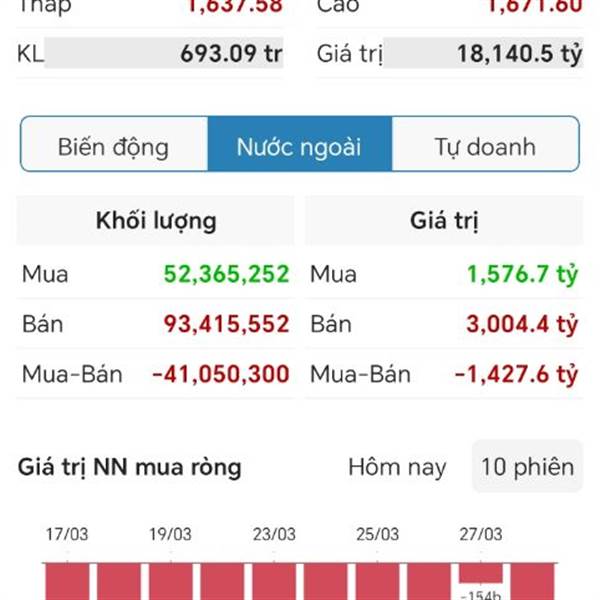 Chiến tranh vẫn còn đó, giá xăng dầu vẫn còn neo cao. Khối ngoại đang bán ròng liên tục. Giá 15.X vào thăm dò.