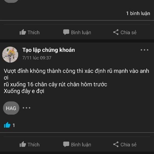 Lứa gà mới thì lại đi hô, còn lứa gà cũ thì lại đang chửi bới. Kéo xanh cho phiên thì lại quên hết những gì đã sảy ra và vòng lặp lại tiếp tục lặp lại. Mua ->hô hào, chửi bới -> bán. Khi nào thì mới ...Thêm