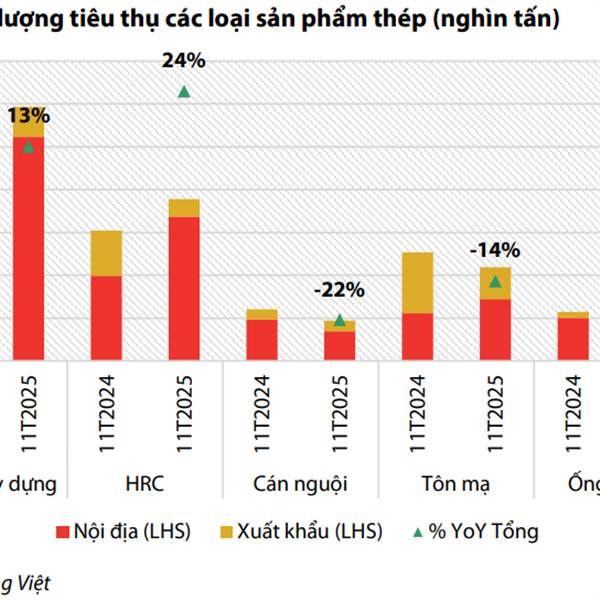 Trong quý III và hai tháng đầu quý IV/2025, sản lượng tiêu thụ HRC của Hòa Phát đã duy trì ở mức 350.000-560.000 tấn mỗi tháng, tương ứng mức tăng 50-150% so với cùng kỳ, qua đó giúp doanh nghiệp đáp ...Thêmnguoiquansat.vn/...thi-truong-viet-nam-262996.html