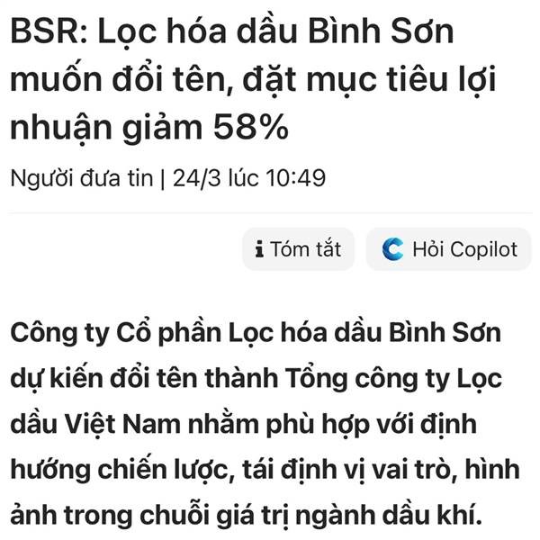 Nói chung là quá đáng mất cả lòng tin,đi đặt mục tiêu lợi nhuận BSR giảm hơn một nửa.