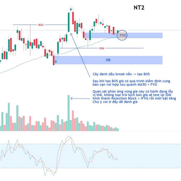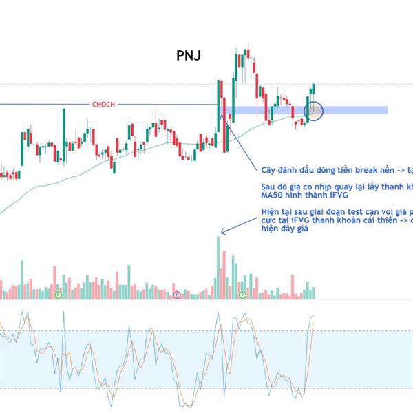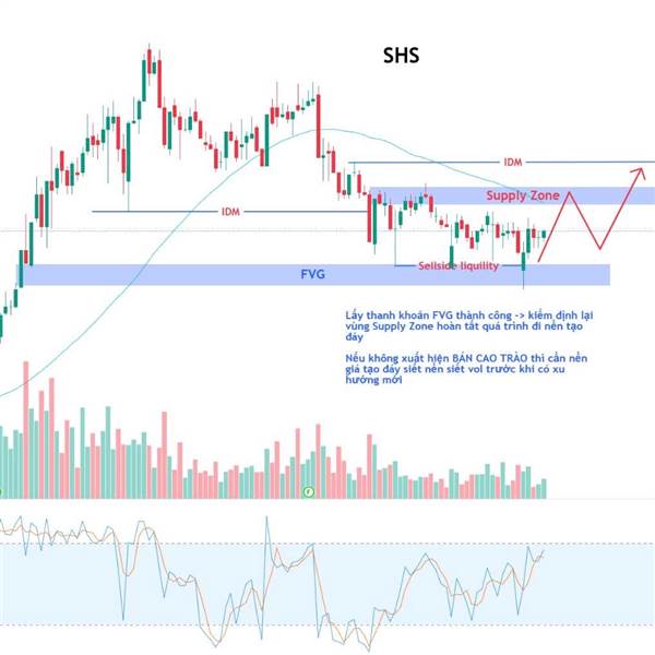 - Test cung với volume kiệt, lực bán suy yếu → kỳ vọng cầu xác nhận tại vùng thanh khoản quan trọng