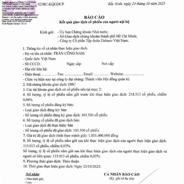 Anh So, anh Nam bán xong chưa không thấy công bố thông tin?