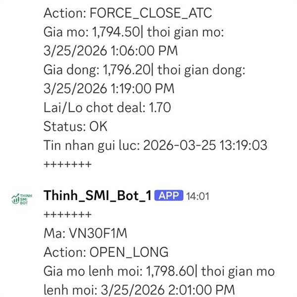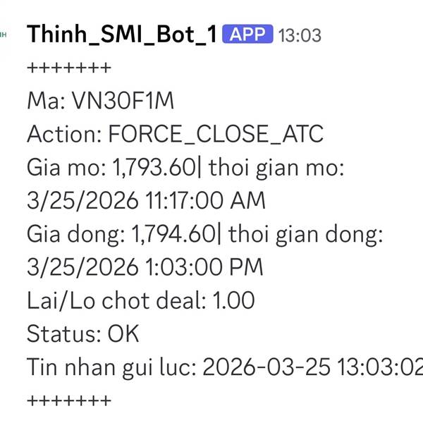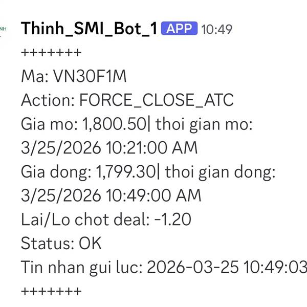 Trải nghiệm nhóm báo lệnh LONG SHORT phái sinh -> BOT báo lệnh tự động liên tục trong phiên * Hiệu suất backtest trên amibroker: Lãi 899 điểm/400 lệnh từ đầu năm đến nay -> trung bình 0-4 lệnh /1 ngày (...Thêm