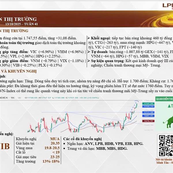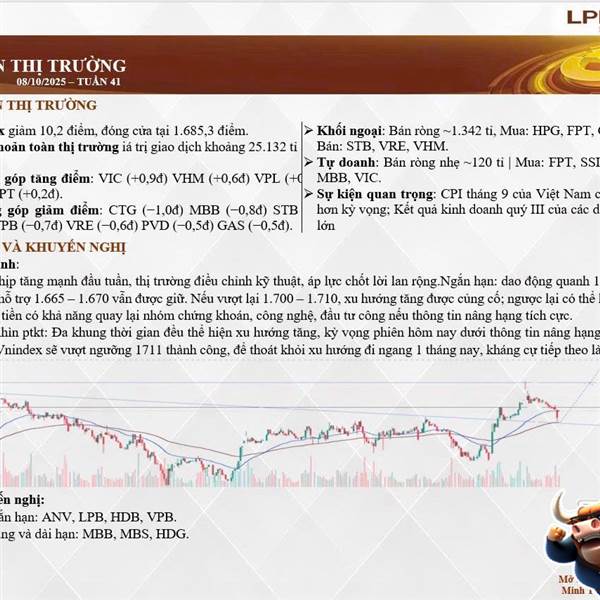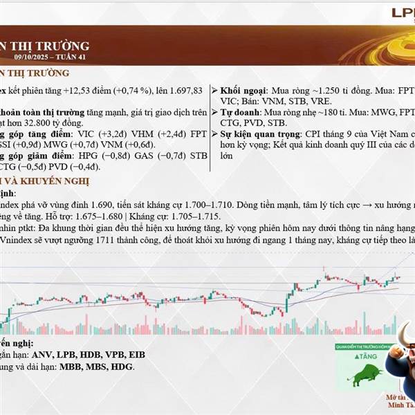em gửi anh chị bản tin buổi sáng trước phiên 9/10. Xu hướng ngắn hạn vẫn tăng. Về dài hạn thì thị trường cần vượt và giao dịch ổn định trên 1711 để thoát khỏi vùng đi ngang biên độ 100 điểm. Chúc anh ...Thêm