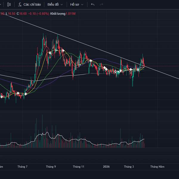 Góc nhìn phân tích kỹ thuật cổ phiếu ngành Ngân hàng VCB (HoSE) - Thanh khoản phù hợp với tài khoản size lớn - Đường MA10, MA20, MA50 và MA100 khung Ngày: Giá đã rơi khỏi những đường này, chưa lấy lại đ...Thêm