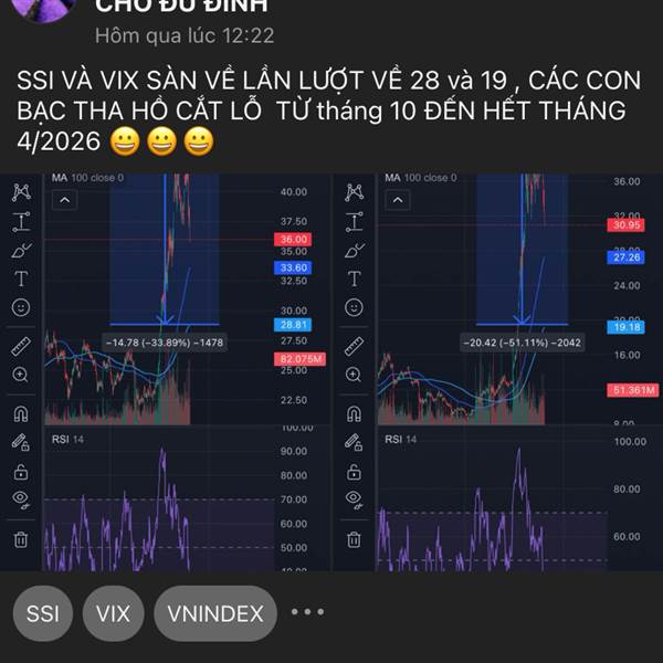 ANH BẢO RỒI CÁC CHÁU GÀ LẮM CỨ NGHE THẦY ĐẾN THÁNG 4/2026 múc SSI GIÁ 26 - 28 , VIX GIÁ 17 -20 , CÒN LẠI CẮT HẾT ĐI