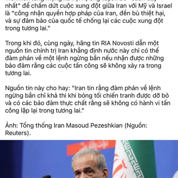 Ngày 18-3, Ngoại trưởng Iran Abbas Araghchi tuyên bố 'không tìm kiếm một lệnh ngừng bắn với Mỹ và Israel, mà là chấm dứt hoàn toàn chiến tranh'.